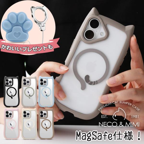 MagSafe対応 iPhone17 ケース iPhone Air iPhone16e 選べる ストラップ付き ねこ 猫耳 クリア iPhone16 iPhone15 pro max plus おしゃれ iphone14 かわいい 韓国