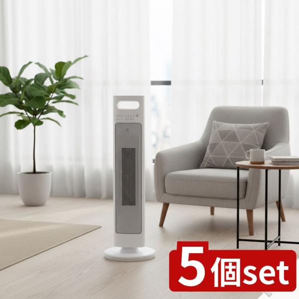 【5個セット】 ゼピール 人感センサー付タワーセラミックヒーター ホワイト (1台) | 人感センサー付きヒーター セラミックヒーター タワー型ヒーター 人感センサ