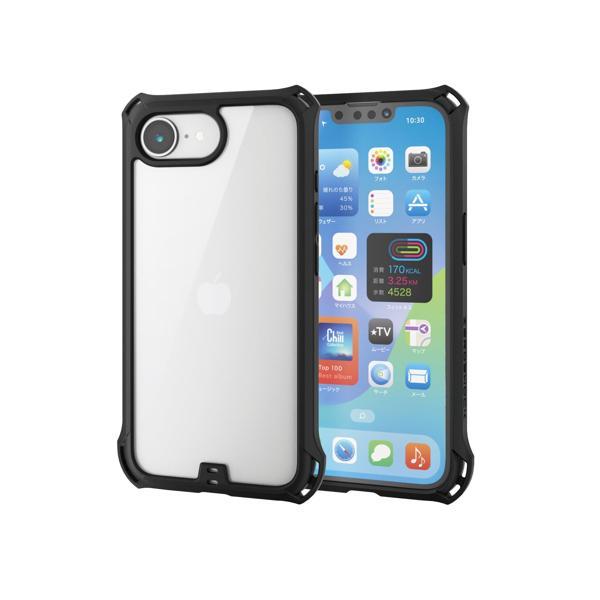 エレコム iPhone SE4 ケース 耐衝撃 衝撃吸収 ZEROSHOCK メタルリング ステッカー付 ブラック PM-A25SZEROFCBK