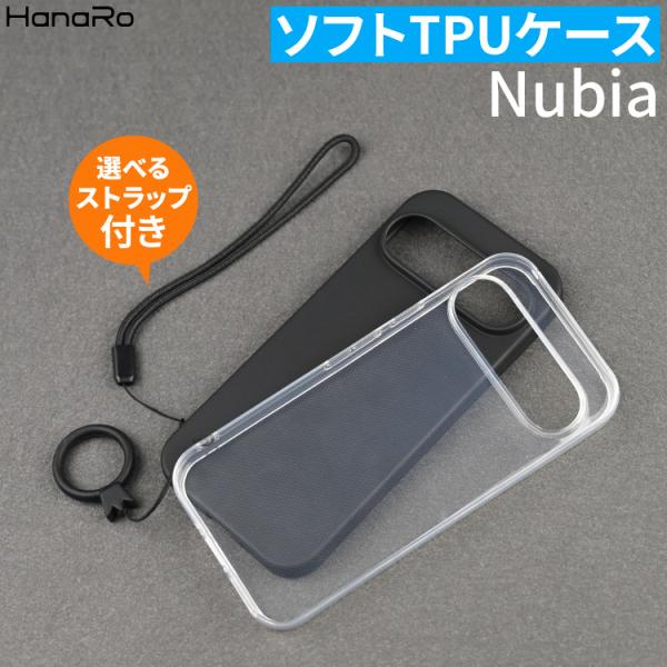 nubia S 5G ケース ストラップセット TPU ヌビア ケース クリア ブラック クリアケース シンプル 透明 ソフトTPU