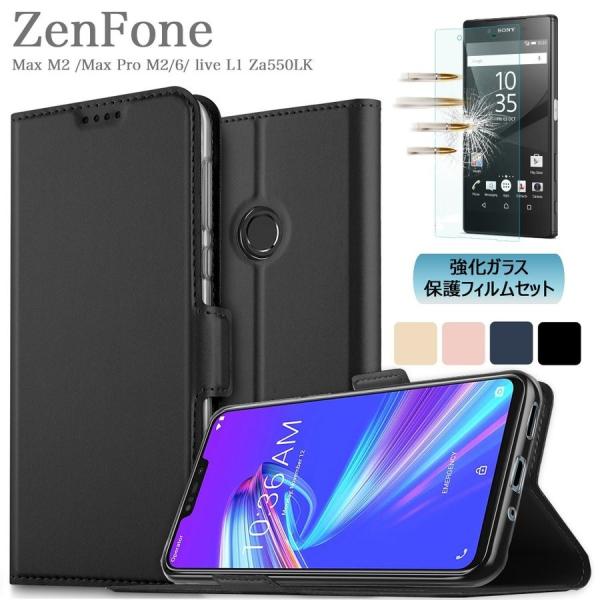 強化ガラス付 ZenFone Max M2/ZenFone Max Pro ZenFone 6 ZS630KL Zenfone live L1 Za550LK 専用ケース カード収納有 手帳型 マグネット内蔵 SIMフリー