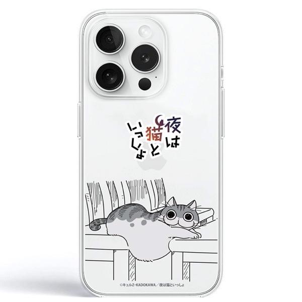 abbi アビー iPhone 15 Pro 夜は猫といっしょ ソフトクリアケース キュルガ ポーズ ABF26622i15PR ネコポス可