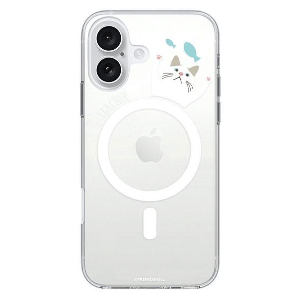 iPhone 16 (2024年6.1インチ2眼) アイフォーン アイフォン アイホーン アイホン iPhone TPU ポリカーボネート 背面ケース クリア ねこ MagSafe規格のワイヤレス充電・吸着 防塵 磁石付き おさかなブルー