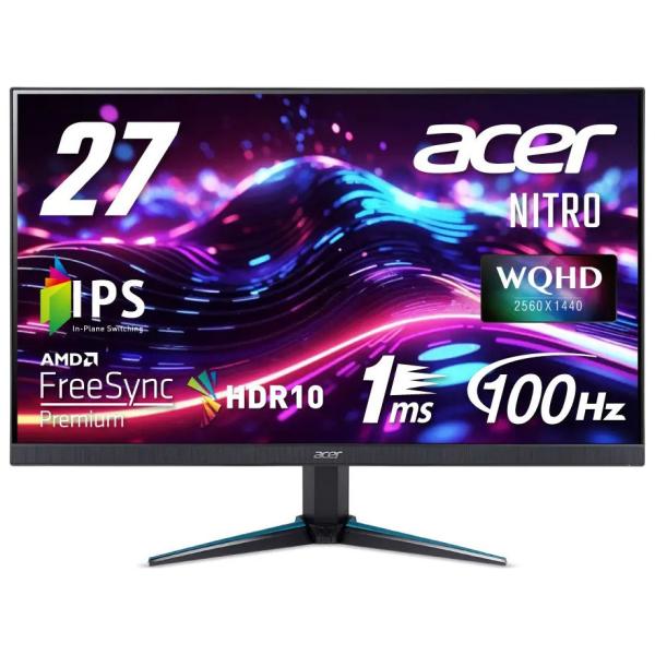 Acer|エイサー ゲーミング液晶ディスプレイ(27型/ IPS/ WQHD 2560×1440/ 100Hz/ 1ms/ HDR10/ HDMI2.0/ DP1.4)(ブラック) Acer Nitro VG270UEbmiipx 返品種別A