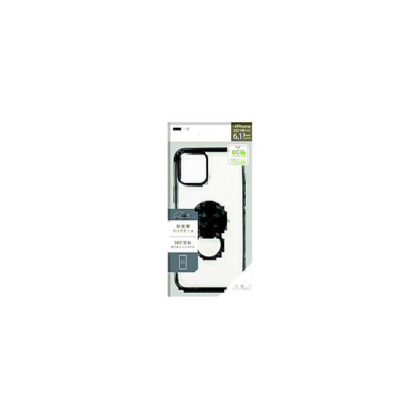 エアージェイ iPhone2021 6.1inch 3眼 リング付き耐衝撃背面ケース BK