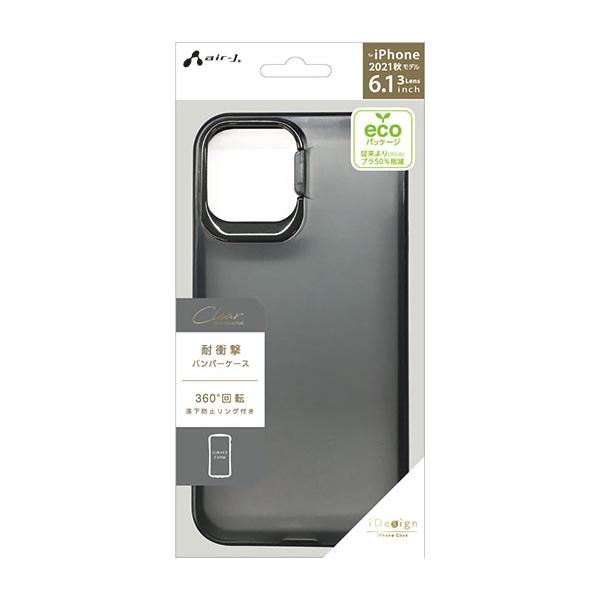 エアージェイ iPhone 13 Pro(6.1インチ)用 スタンド機能付きレンズガード 耐衝撃PCケース(ブラック) AIR-J AC-P21P-LSBK 返品種別A