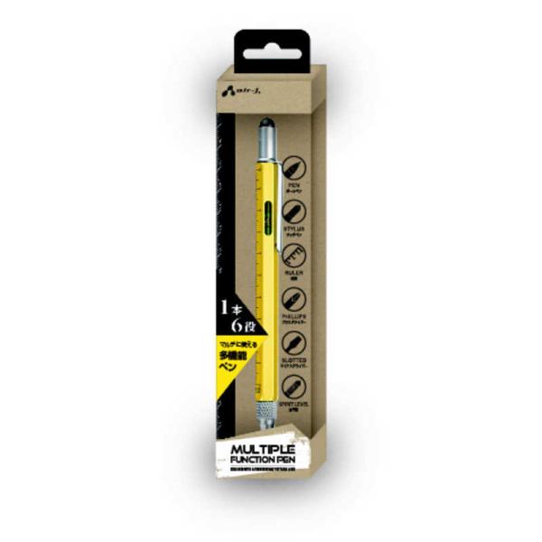 - 【商品説明】 これ1本に6つの機能。 遊び心と実用性を兼ね備えた、究極のマルチツールペン。 エアージェイ 6機能搭載 マルチツールペン (型番: ATP-MULTI) 「ペンケースや工具箱は、もっとスッキリさせたい」 「いざという時に役立つ、便利なガジェットが好きだ」 「ちょっと変わった、気の利いたプレゼントを探している」 そんなあなたの知的好奇心と「あったらいいな」を刺激する、6つの多彩な機能を搭載したマルチツールペンです。 ▼ 1本に凝縮された、驚きの6大機能 ▼ 【ボールペン】 なめらかな書き心地の油性ボールペン(黒色インク)を搭載。 普段使いの筆記具として、まず基本性能をしっかりと押さえています。 【スタイラスペン(タッチペン)】 ペン後端の柔らかなスタイラスで、スマートフォンやタブレットを快適に操作。 指紋を付けずに、メモやドローイングなど繊細な作業も行えます。 【水平器】 ちょっとしたDIYや、ポスター、棚などをまっすぐ取り付けたい時に便利な水平器を本体に内蔵。 【スケール(定規)】 ボディの4側面には、インチとセンチメートルの定規をプリント。 さらに1/100, 1/200, 1/300の縮尺スケールも備えており、簡単な計測や図面の確認にも役立ちます。 【プラスドライバー】 スタイラスペンの下には、精密プラスドライバーを格納。 メガネのネジ締めや、おもちゃの電池交換など、小さなネジに対応できます。 【マイナスドライバー】 プラスドライバーのビットを反転させれば、精密マイナスドライバーとして使用可能。 1つのビットで2役をこなす、スマートな設計です。 ▼ 使いやすさを追求したデザイン ▼ 抜群のグリップ感: 持ちやすさと転がりにくさを両立した、鉛筆のような6角形のボディ形状を採用。 選べるカラー: スタイリッシュな「ブラック」と、ツール感が際立つ「イエロー」の2色からお選びいただけます。 ギフトにも最適: 多機能でユニークなこのペンは、文房具好きの方、ガジェット好きの方、お父さんへのプレゼントなど、様々なギフトシーンで喜ばれます。 【商品仕様】 ブランド: エアージェイ株式会社(air-J) 型番: ATP-MULTI JANコード: 4526397105273 (イエロー), 4526397105266 (ブラック) スタイラスペン 水平器 四面スケール(inch, cm, 1/100, 1/200, 1/300縮尺) 精密プラスドライバー 精密マイナスドライバー 対応機種: 各種スマートフォン、タブレット(スタイラスペン機能) 【注意事項】必ずお読みください ご購入前に、ご希望のカラー(ブラック/イエロー)をご確認ください。 ドライバーは精密機器用です。 大きなネジや固く締まったネジには使用しないでください。 破損の原因となります。 スタイラスペンは、すべての機種・アプリでの動作を保証するものではありません。 また、保護フィルムの種類によっては感度が低下する場合があります。 小さな部品(ドライバービット)を含みます。 紛失や、乳幼児の誤飲には十分ご注意ください。 本製品の使用による、いかなる機器の破損や故障、データの損失などにつきましては、一切の責任を負いかねます。 ご使用のモニター環境により、実際の商品の色合いと異なって見える場合があります。 製品のデザイン、仕様は改良のため予告なく変更される場合がございます。 カラーイエロー / ブラック 素材【本体】アルミニウム【クリップ】マンガン銅【ペン先・キャップ】銅【タッチペン】シリコン 関連キーワード: *【商品説明】 これ1本に6つの機能。 遊び心と実用性を兼ね備えた、究極のマルチツールペン。 エアージェイ 6機能搭載 マルチツールペン (型番: ATP-MULTI) 「ペンケースや工具箱は、もっとスッキリさせたい」 「いざという時に役立つ、便利なガジェットが好きだ」 「ちょっと変わった、気の利いたプレゼントを探している」 そんなあなたの知的好奇心と「あったらいいな」を刺激する、6つの多彩な機能を搭載したマルチツールペンです。 ▼ 1本に凝縮された、驚きの6大機能 ▼ 【ボールペン】 なめらかな書き心地の油性ボールペン(黒色インク)を搭載。 普段使いの筆記具として、まず基本性能をしっかりと押さえています。 【スタイラスペン(タッチペン)】 ペン後端の柔らかなスタイラスで、スマートフォンやタブレットを快適に操作。 指紋を付けずに、メモやドローイングなど繊細な作業も行えます。 【水平器】 ちょっとしたDIYや、ポスター、棚などをまっすぐ取り付けたい時に便利な水平器を本体に内蔵。 【スケール(定規)】 ボディの4側面には、インチとセンチメートルの定規をプリント。 さらに1/100, 1/200, 1/300の縮尺スケールも備えており、簡単な計測や図面の確認にも役立ちます。 【プラスドライバー】 スタイラスペンの下には、精密プラスドライバーを格納。 メガネのネジ締めや、おもちゃの電池交換など、小さなネジに対応できます。 【マイナスドライバー】 プラスドライバーのビットを反転させれば、精密マイナスドライバーとして使用可能。 1つのビットで2役をこなす、スマートな設計で