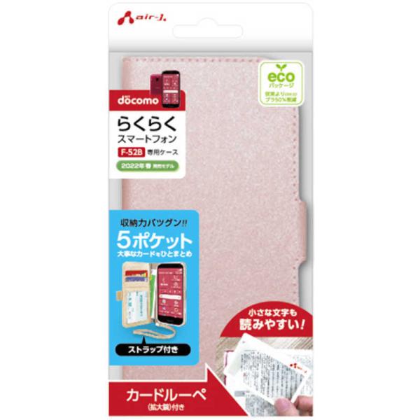 エアージェイ らくらくスマートフォン F-52B 5ポケットシャイニー手帳型ケース PK ACF52BMP