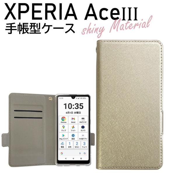 Xperia Ace3 ケース 手帳型 SO-53C 専用 PUレザー エクスペリア SOG08 スマホケース カードポケット マグネットベルト ゴールド ブックタイプ AC-XPA3-SHY