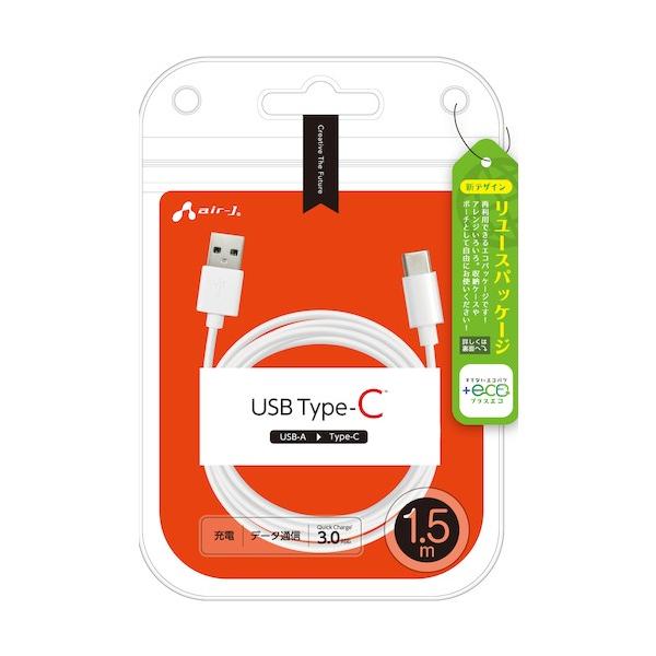 エアージェイ 【+ECO】USB Type-C充電ケーブル 1.5m UCJ-ETC1.5M WH