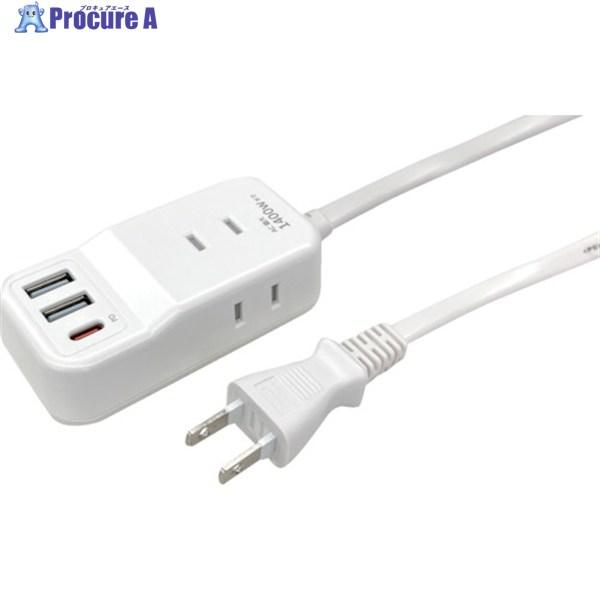 air-J 業界最小クラスモバイルタップACX3,USBX2,type-c(PD20W)X1 1.5mケーブル WH ▼572-8066 AOT-N315 WH 1個