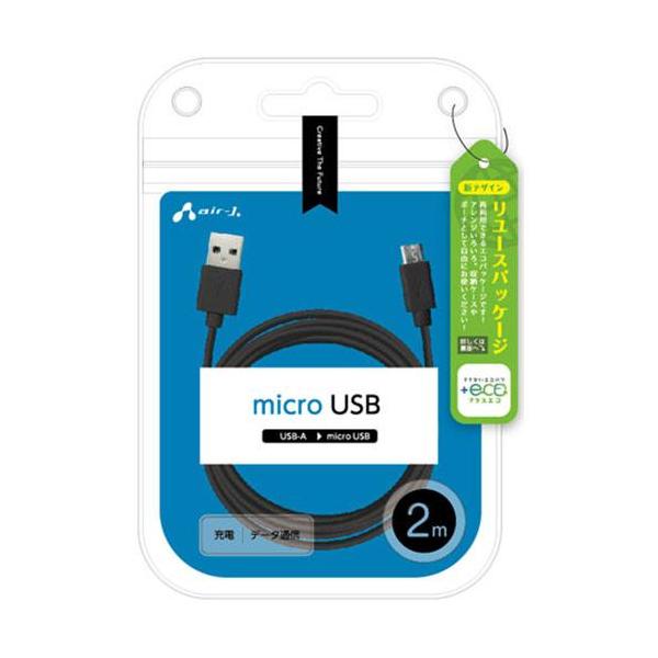 エアージェイ(air-j) UKJ-E2A2M-BK ブラック microUSBケーブル 充電・データ通信 2m