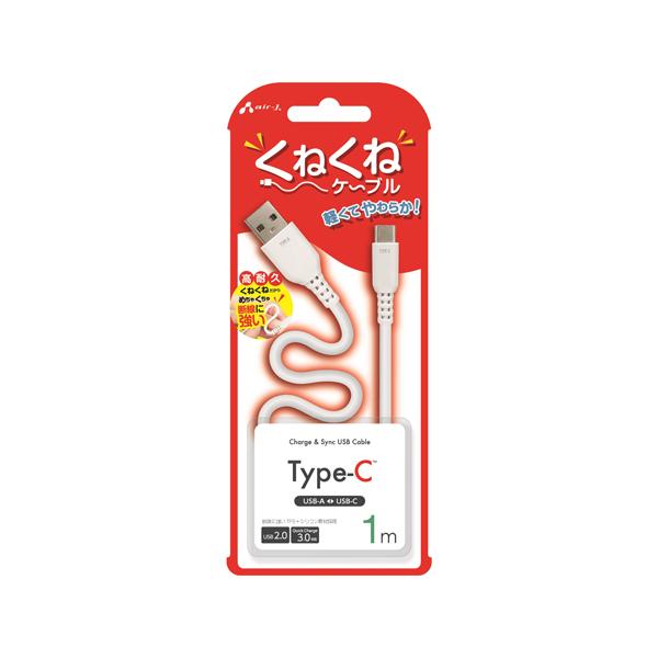 くねくねType-Cケーブル 1m エアージェイ UCJ-WTC1M WH (68-1421-26)