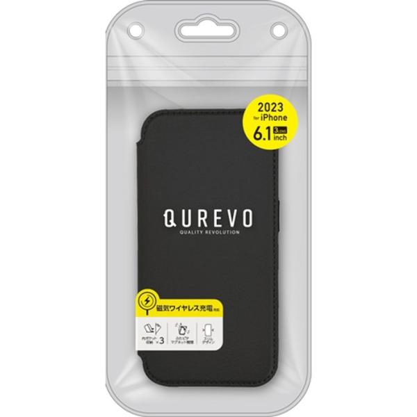 iPhone15 Pro用 磁気ワイヤレス充電対応 手帳型スリムケース ブラック エアージェイ AC-P23P-PMB BK