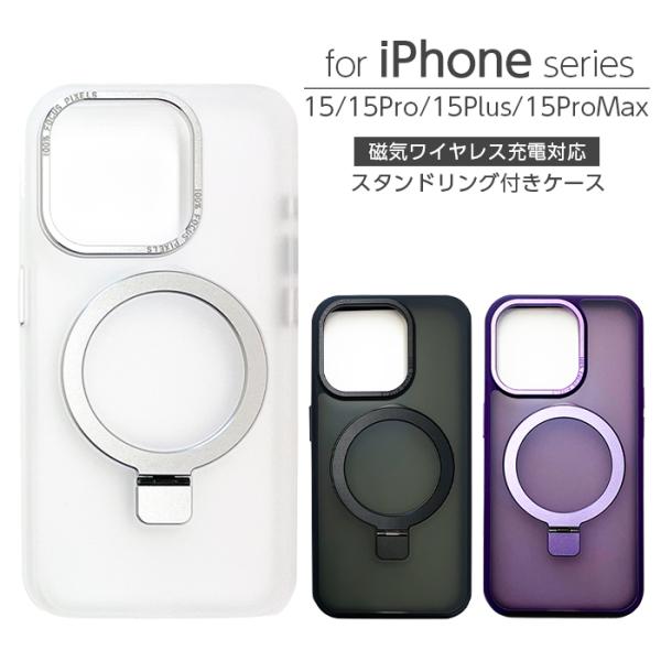 iPhone15 iPhone15Pro iPhone15Plus iPhone15ProMax ケース iPhone 15 Pro Max Plus 磁気ワイヤレス充電対応 スタンド リング付き スマホリング カバー クリア