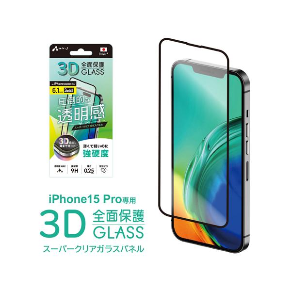 iphone15pro用3D全面保護スーパークリアガラスパネル エアージェイ VG-PR23P-CL (68-1421-17)