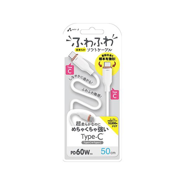 強化コネクターふわふわケーブルCtoC 50cm ホワイト エアージェイ CCJ-AW50 WH (68-1084-22)