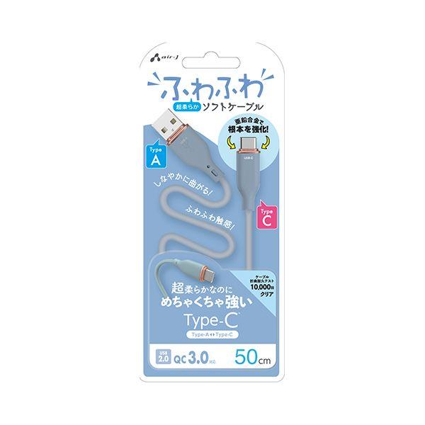 エアージェイ UCJ-AW50 BL 強化コネクターふわふわケーブルA to C UCJAW50BL