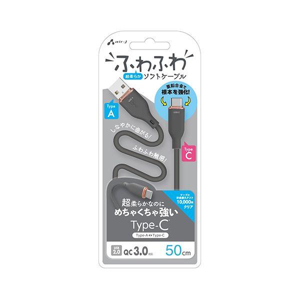 エアージェイ UCJ-AW50 GY 強化コネクターふわふわケーブルA to C UCJAW50GY