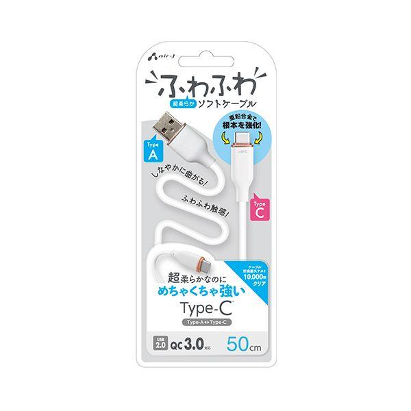 エアージェイ UCJ-AW50 WH 強化コネクターふわふわケーブルA to C UCJAW50WH