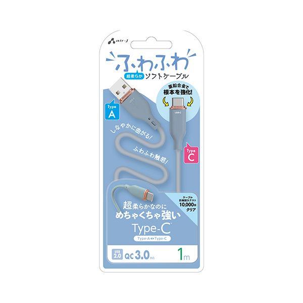 エアージェイ UCJ-AW1M BL 強化コネクターふわふわケーブルA to C UCJAW1MBL
