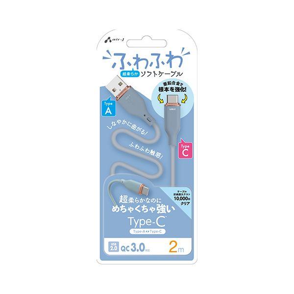エアージェイ UCJ-AW2M BL 強化コネクターふわふわケーブルA to C UCJAW2MBL