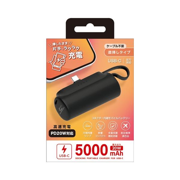 エアージェイ PD20W対応 TYPE-C 横型モバイルバッテリー+TYPE-C1ポート 5000mAh(ブラック) MB-T5000PDBK 返品種別A