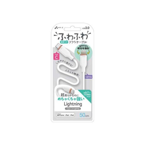 ふわふわ Type-C to Lightning ソフトケーブル 50cm エアージェイ MCJ-AW50 WH