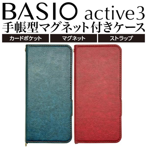 BASIO active3 手帳型 ケース ソフトレザー 手帳型 ケース ブルー レッド カバー スマホカバー スマホケース レザーケース