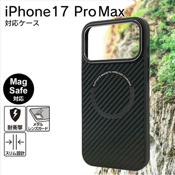 iphone17promax ケース ブラック Magsafe対応 カーボン調 薄型 スリム メタルガード カメラ保護