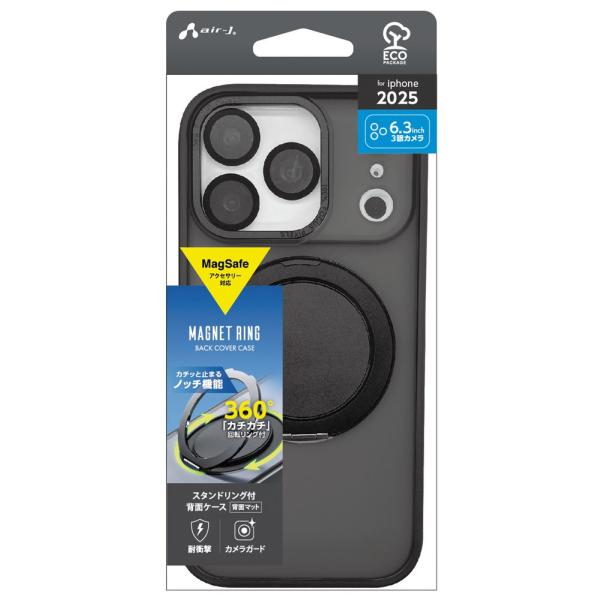 エアージェイ iPhone 17 Pro用 MagSafe対応 カチカチ回転リングスタンドクリアケース(ブラック) air-J AC-P25P-MRSBK 返品種別A