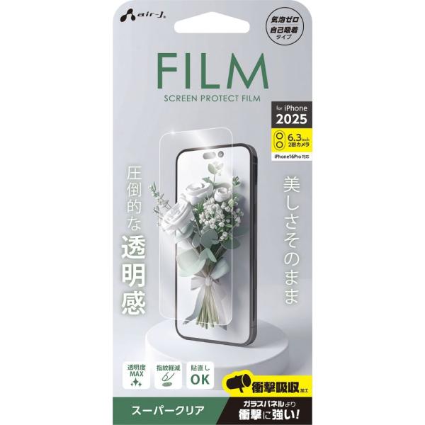 エアージェイ iPhone 17用 液晶保護フィルム 高光沢 air-J VF-P25-CL 返品種別A