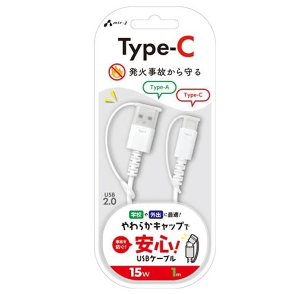 エアージェイ 保護キャップ付き Type-A to C ふわふわケーブル 1m UCJ-SCS1M ホワイト
