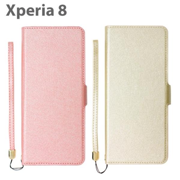 Xperia8 ケース 手帳型ケース シャイニー PUレザー エクスペリア SOV42 ピンク ベージュ AC-XP8SHY