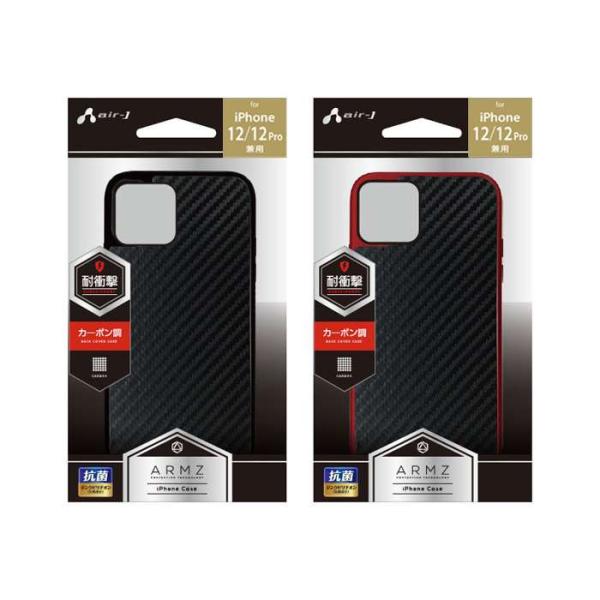 iPhone 12/iPhone 12 Pro カーボン調 耐衝撃 スリムバックカバー 2重構造 抗菌加工 エアージェイ AC-P20M-GA