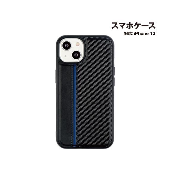 iPhone13 対応 GT MOBILE カーボン調PUレザー 耐衝撃背面ケース シェルカバー AC-P21-GP BL / ブルーライン