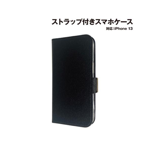 iPhone13 対応 シャイニー手帳型ケース ストラップ付き AC-P21-SHY BK / ブラック