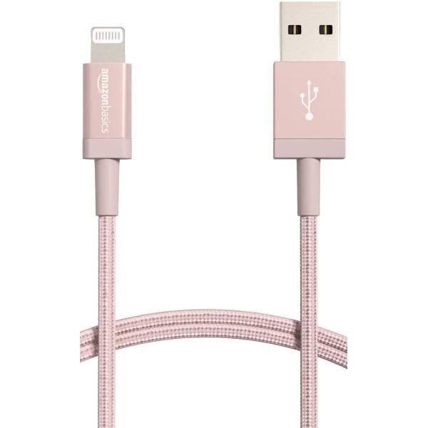 Amazonベーシック USB-A -ライトニングケーブル ナイロン iPhone充電 Apple MFi認証 iPhone 14/14 Pro/13/13 Pro/12/SE(第2世代)/iPad 各種対応(ローズゴールド 0.9m)
