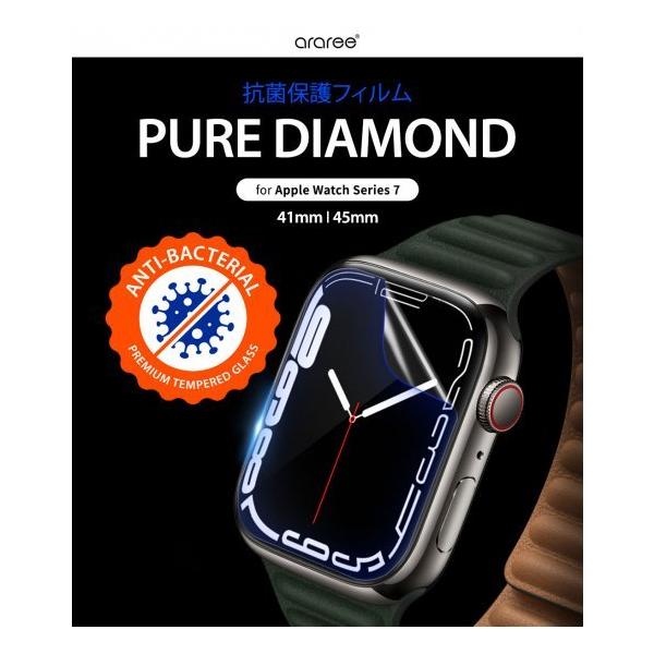 国内正規品 araree Apple Watch 7 45mm/41mm フィルム (2枚入り) PURE DIAMOND 抗菌保護フィルム AR22232AW