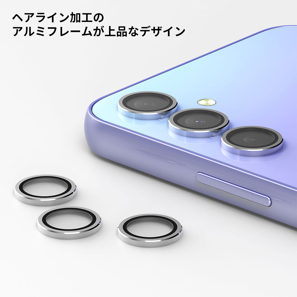 araree Galaxy A54 対応 カメラ専用 強化ガラスフィルム カメラレンズ 保護 アルミメタル ヘアライン カメラ保護シートC-SUB CORE メタルリング