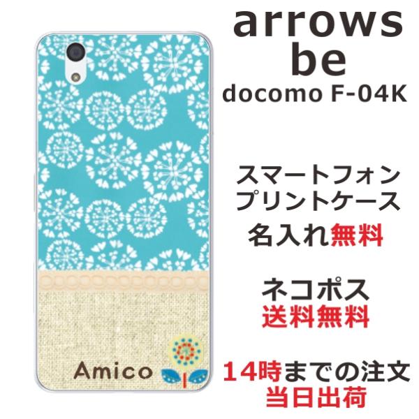 arrows Be F-04K ケース アローズBe カバー らふら 名入れ 北欧デザイン ブルー フラワー