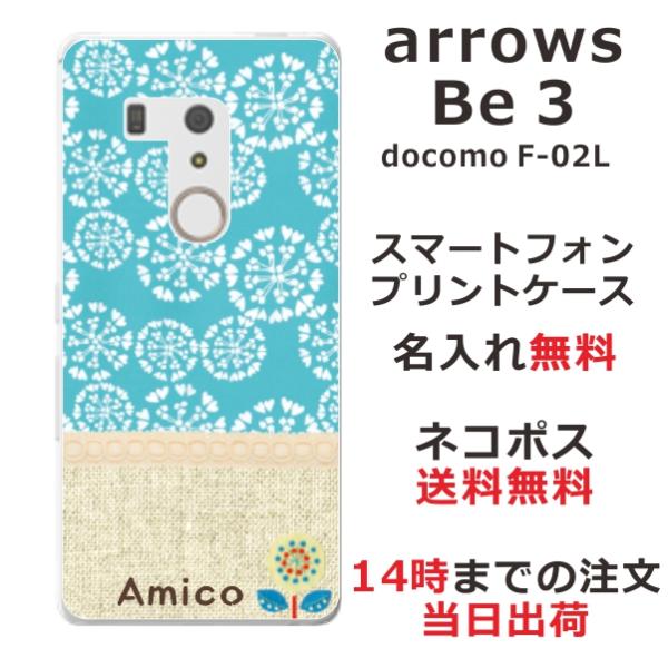 arrows Be3 ケース F-02L アローズBe3 カバー らふら 名入れ 北欧デザイン フラワー ブルー