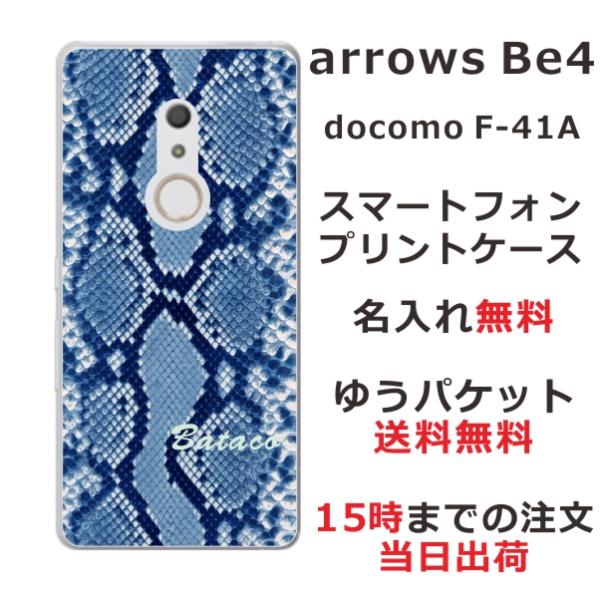 arrows Be4 ケース F-41A アローズBe4 カバー らふら 名入れ へび柄 ブルー