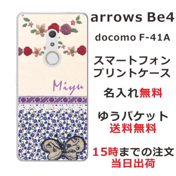 arrows Be4 ケース F-41A アローズBe4 カバー らふら 名入れ 蝶 パープルフラワー