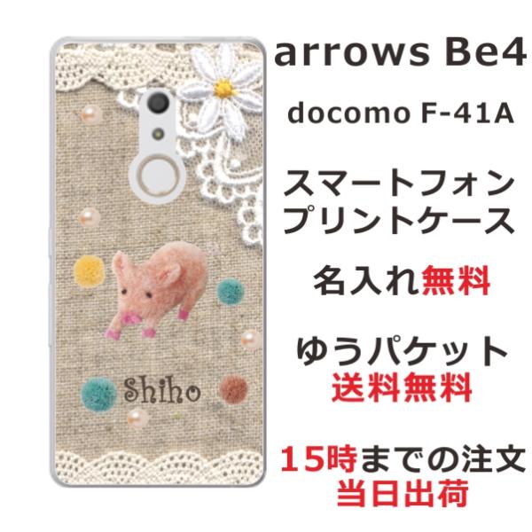 arrows Be4 ケース F-41A アローズBe4 カバー らふら 名入れ コットンレース風 ブタ