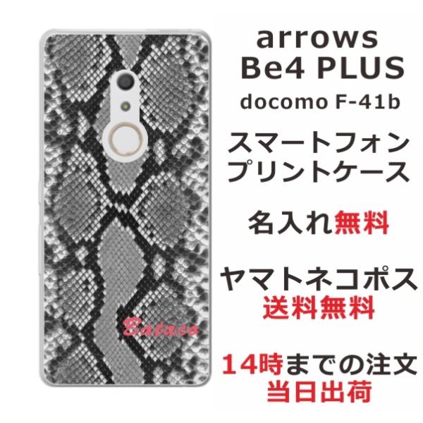 arrows Be4 PLUS ケース F-41B アローズBe4プラス カバー らふら 名入れ へび柄 ブラック