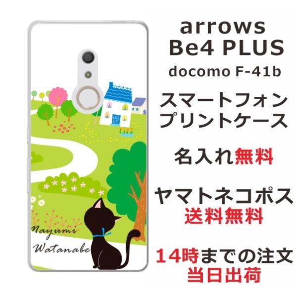 arrows Be4 PLUS ケース F-41B アローズBe4プラス カバー らふら 名入れ 黒猫 お散歩