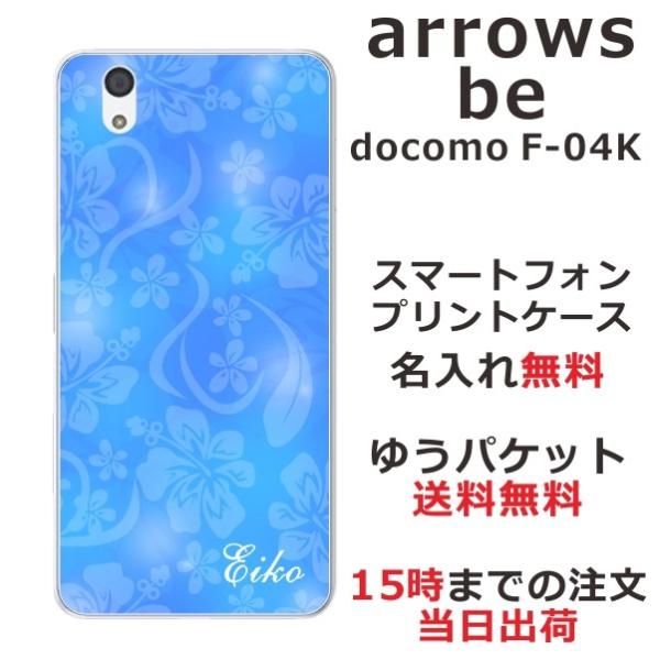 arrows Be F-04K ケース アローズBe カバー らふら 名入れ ハイビスカスブルー