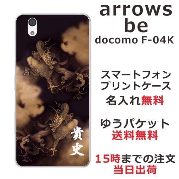 arrows Be F-04K ケース アローズBe カバー らふら 名入れ 昇龍セピア