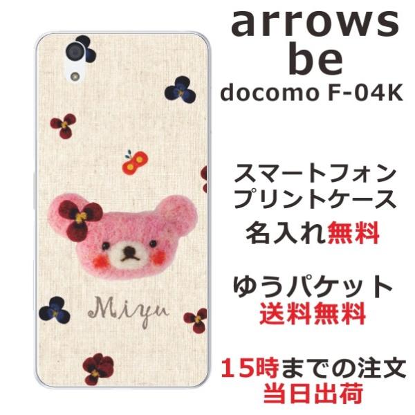 arrows Be F-04K ケース アローズBe カバー らふら 名入れ フェルト風 ベア ピンク